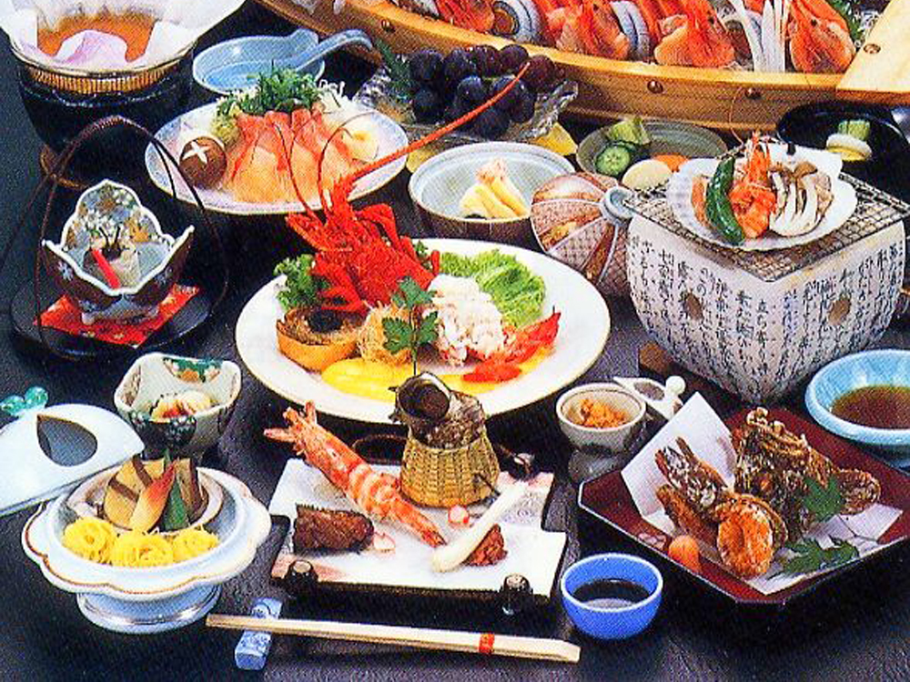 地元の旬の山の幸と日本海の海の幸をふんだんにとり入れた、ベテラン料理長が創りだす当館自慢の味です。