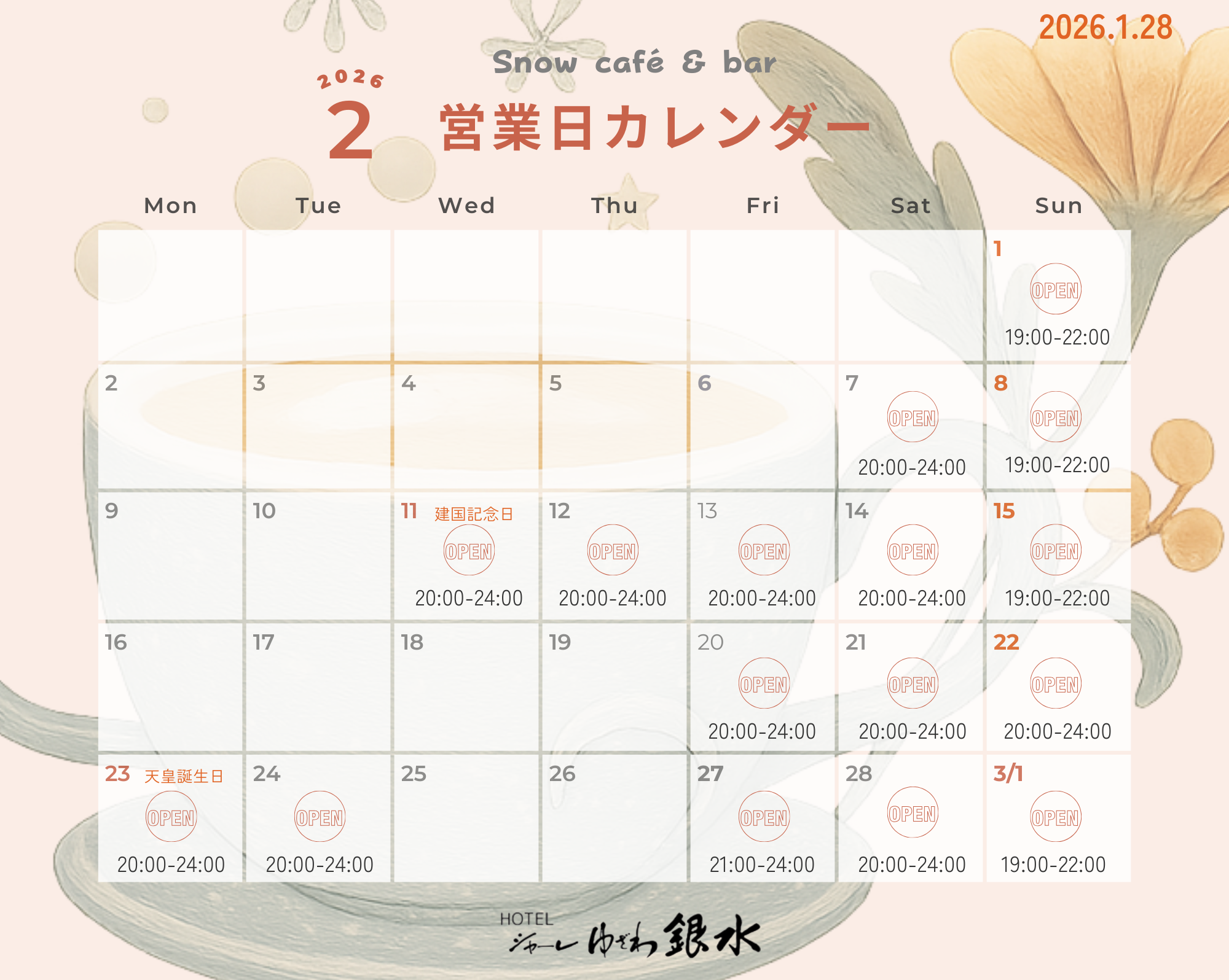2025年12月28日、「Snow Café & Bar」がオープンいたしました♪